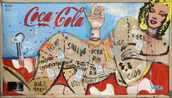 The paintings, which also use materials found in landfills and junkyards, also take a stance against capitalism and the massacre of nature in a recyclable sense.